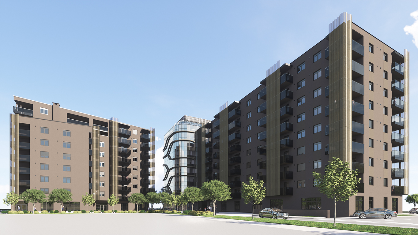 Okoliš će biti uređen u skladu s projektom hortikulturnog uređenja na način da se formira pješački trg ispred ulaza u sve tri poslovno-stambene zgrade sa zonama zelenila.